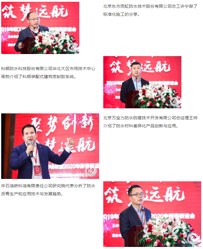 12月29日,由北京市建設工程物資協會防水分會、北京建筑防水行業誠信聯盟主辦,北京東方雨虹防水技術股份有限公司承辦的2019年度工作會議暨2020年新春聯誼會在北京召開。本次會議以“聚勢創新,筑夢遠航”為主題,圍繞企業創新發展、協作共享的中心議題展開。