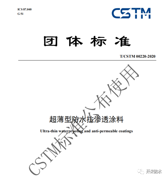 《超薄型防水抗滲透涂料》標準規定了超薄型防水抗滲透涂料的要求、試驗方法、檢驗規則及標志、包裝和貯存。適用于以丙烯酸酯聚合物為主要成膜物,加入助劑等制成的施工干膜厚度小于100μm的水性單組分防水抗滲透涂料。該產品主要用于廚房間、衛生間、陽臺等建筑表面。據悉,該標準將與2020年7月14日正式發布實施。